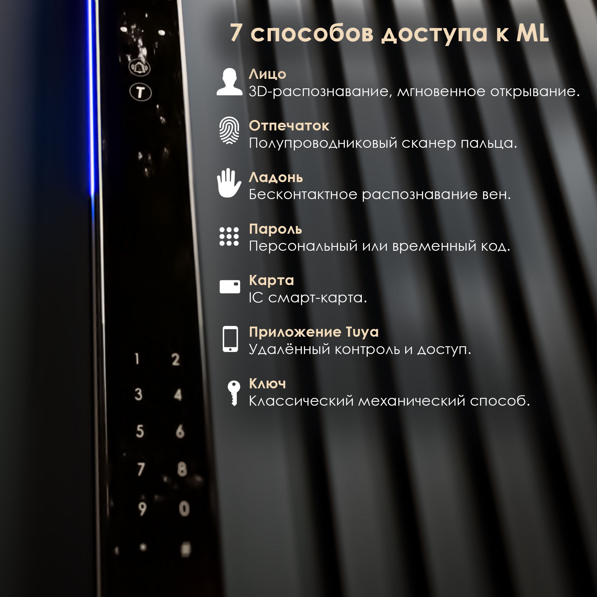Тenon ML — умная система с 3D-распознаванием лиц, сканированием вен ладони и Wi-Fi. 7 способов разблокировки.